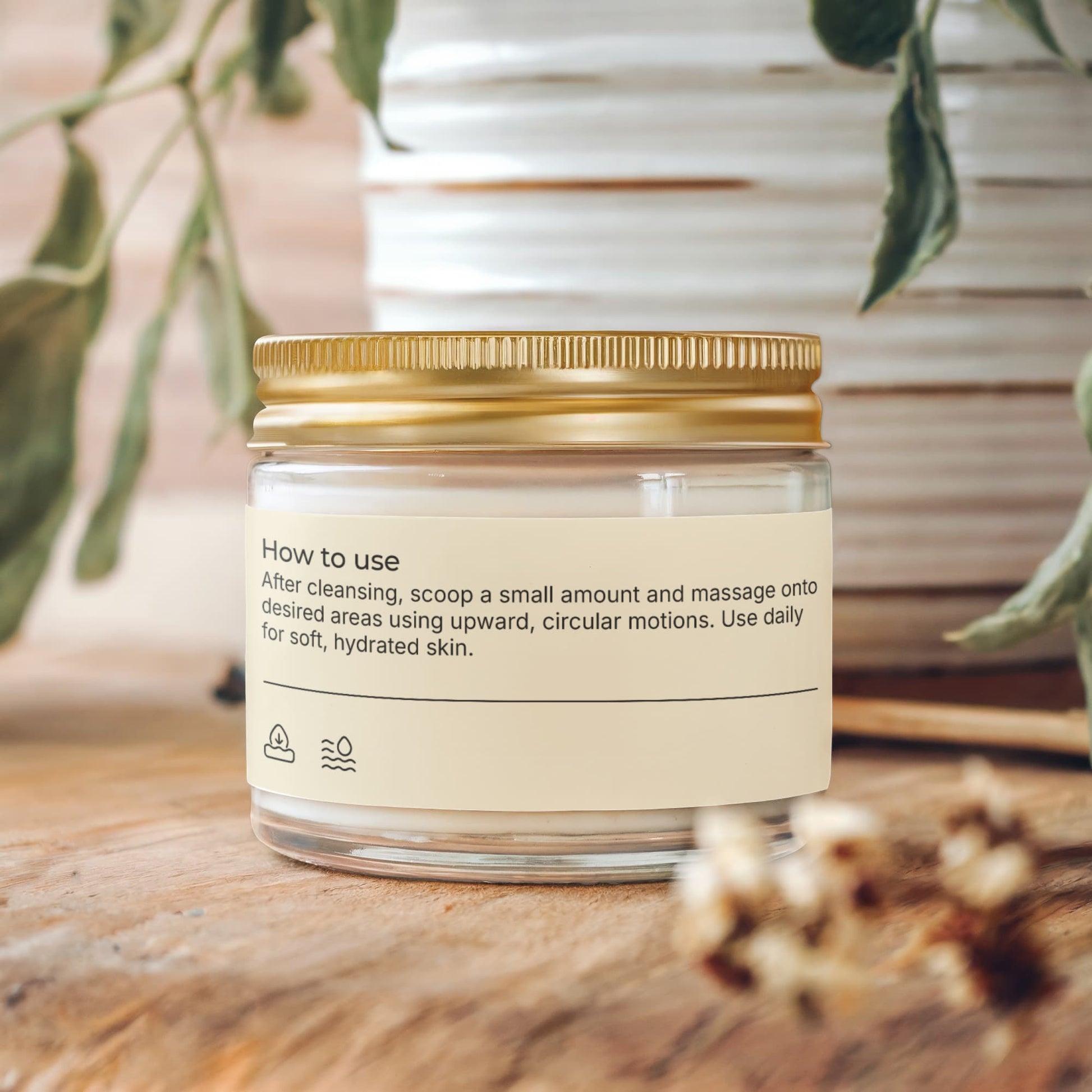 After cleansing, scoop a small amount and massage onto desired areas using upward, circular motions. Use daily for soft, hydrated skin.